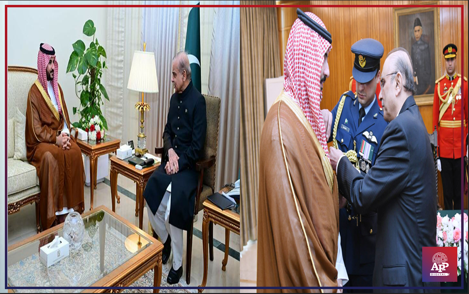 ISLAMABAD (Manend News) Prime Minister Muhammad Shehbaz Sharif on Sunday said that he was delighted to meet and exchange views with his dear brother Prince Khalid bin Salman bin Abdul Aziz Al Saud, Defence Minister of Saudi Arabia who was Guest of Honour at Pakistan Day Parade.