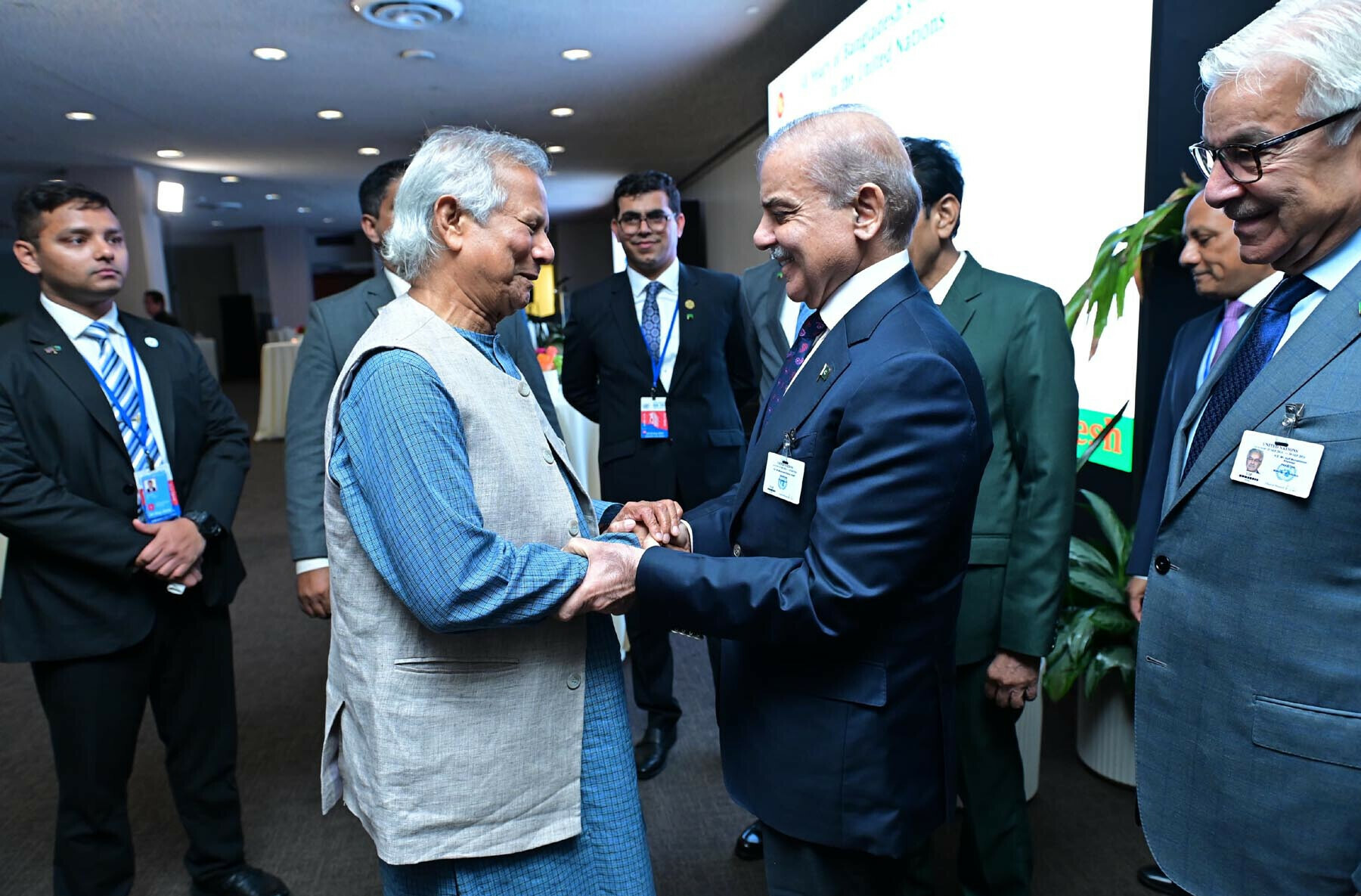 Separately, Bangladesh’s Prothom Alo newspaper reported that Prime Minister Sharif, US Assistant Secretary of State for Central and South Asia Donald Lu, and representatives of various nations attended a reception hosted by Yunus, celebrating Bangladesh’s 50th anniversary of UN membership.