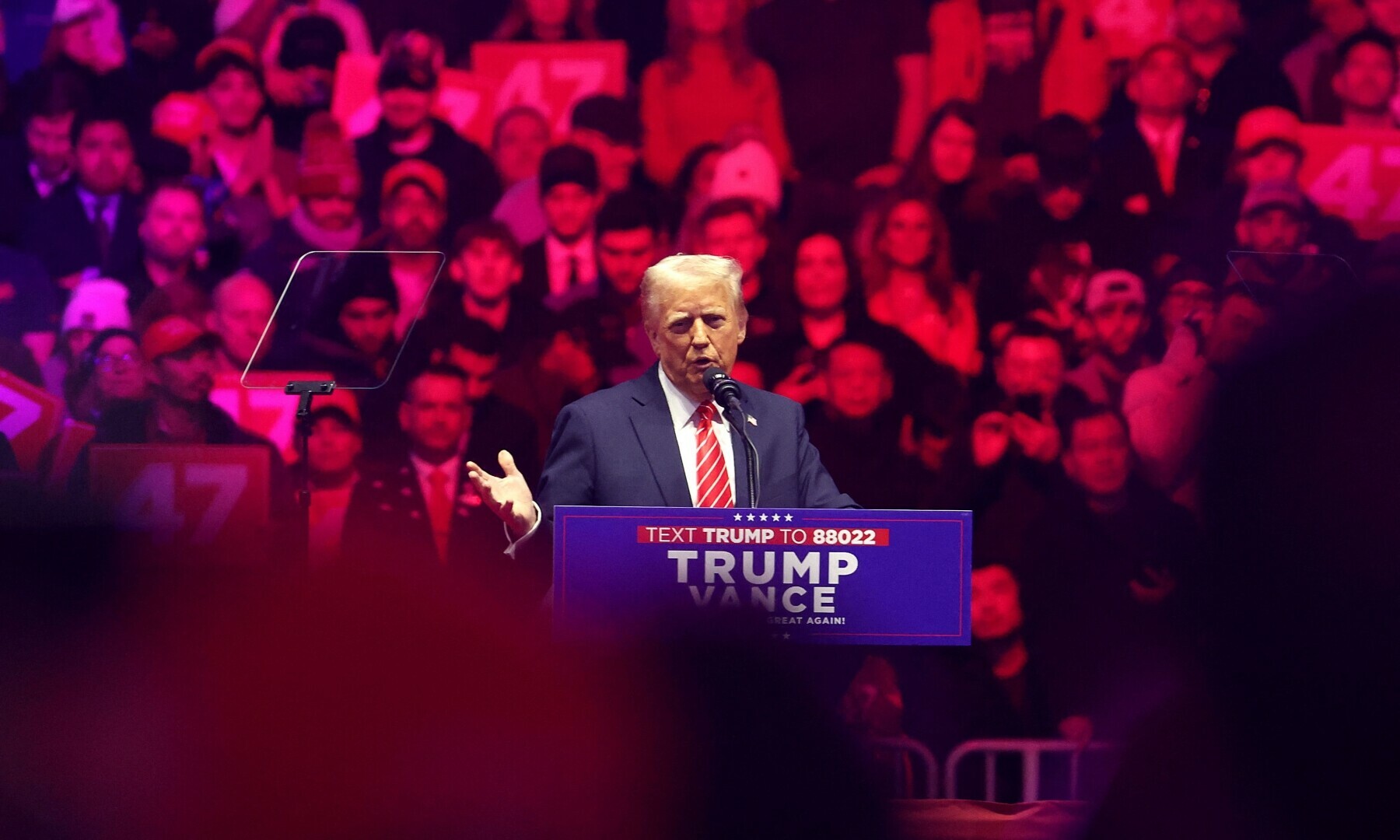 As befitting his status, Musk was called by Trump to the stage to speak, while JD Vance, who will be sworn in on Monday as vice president, was not. As it was, Trump seemed to be unsure where Vance was in the arena. “Wherever the hell he is,” Trump said, looking about. “He’s here someplace.”
