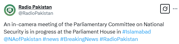 At 1:32pm, Radio Pakistan confirmed in a post on X that the in-camera meeting was underway.